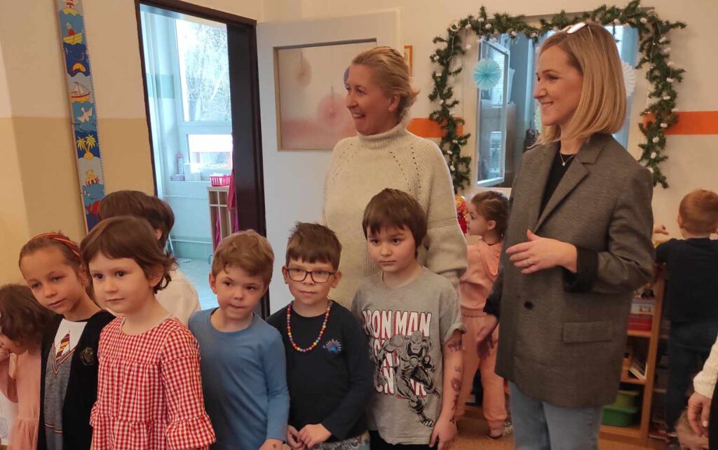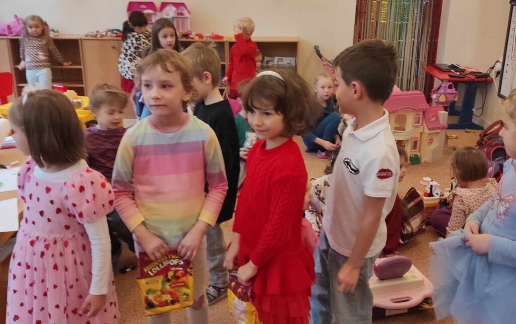 Po příjezdu do Bratislavy jsme byli všichni vřele přivítání dětmi i zaměstnanci v hostující škole a po celý pobyt nám byla věnována maximální péče ze stran našich nových slovenských přátel. Děti se vzájemně představily a předaly si dárky, charakteristické pro naše sousedící země. Prohlédli jsme si celou školku, kde si děti mely možnost bohatě pohrát se všemi hračkami a jednotlivé třídy, kde jsme se po skupinkách účastnili výchovně vzdělávacích aktivit, především s využitím digitálních technologií zážitkového vzdělávání. Děti si v tělocvičně vyzkoušely lezeckou stěnu a v posilovně vybavené dětskými posilovacími stroji si důkladně zacvičily. Následně si odpočinuly v čítárně při poslechu četby z dětských knih. Měly tak možnost porovnat rozdíly mezi českým a slovenským jazykem.