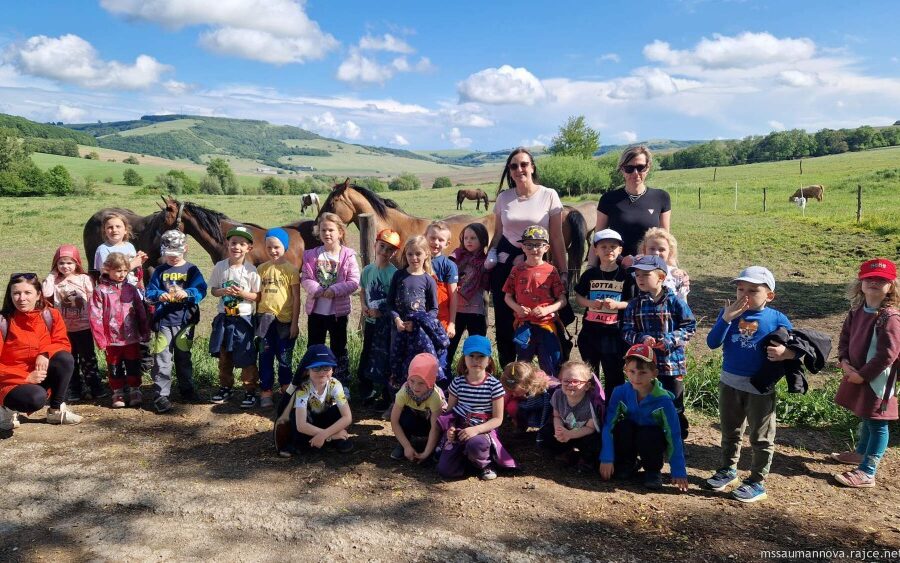 V pondělí 26. května jsme nasedli do autobusu a vydali se za dobrodružstvím. Po cestě jsme obdivovali krásu přírody Vrbovčianských kopanic a pomalu se blížili k Myjavě. Program v mateřské škole Bradáčova byl pečlivě sestaven tak, aby přinášel co nejvíce příležitostí pro společné aktivity. Děti si na úvod zahrály dynamické i klidnější hry, prozkoumaly vlastnosti a zákonitosti některých jednoduchých chemických pokusů. Tyto pokusy byly navrženy tak, aby podporovaly týmovou spolupráci. Děti neměly s navázáním nových kontaktů žádný problém. Po programu ve školce jsme se přesunuli na biofarmu Kaška, kde jsme byli ubytovaní. Odpoledne jsme se společně vydali na procházku okolo ohrad s koňmi. Den jsme zakončili zpíváním u ohně a opékáním špekáčků.
