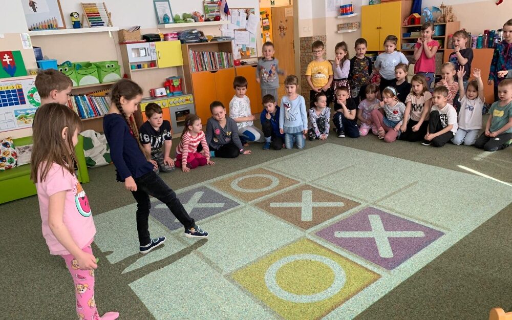 Dopoledne druhého dne probíhalo v prostorách mateřské školy Tupolevova. Po prohlídce celé školy děti ze slovenské mateřské školy ukázaly českým dětem své nejoblíbenější hry a hračky a společně si zahrály didaktické hry se svislou projekcí pomocí nového interaktivního projektoru. Hrací plochou je podlaha třídy, hry jsou tedy spojeny vždy s pohybem a je možno zapojit více dětí najednou. Naše děti brzy porozuměly pravidlům a s radostí se připojily. Bylo zřejmé, že digitální kompetence si děti osvojují snadno a s využitím vhodných pomůcek naprosto přirozeně. Po dynamické hře si děti mohly odpočinout při sledování animované pověsti o stavbě bratislavského hradu a po jejím zhlédnutí si na interaktivní tabuli vyzkoušely další možnosti této pomůcky a sestavily českou a slovenskou vlajku a znaky států pomocí interaktivního pera.